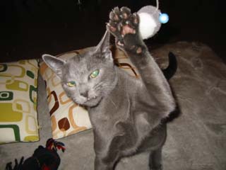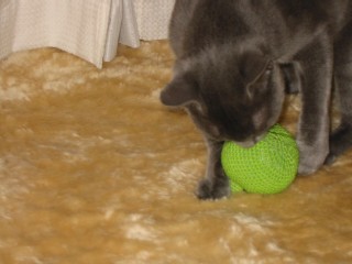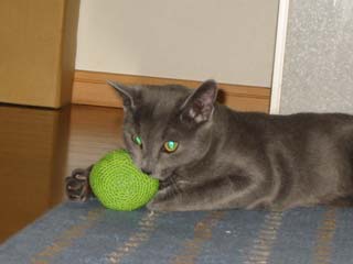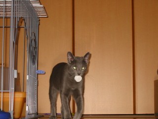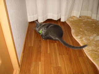 2003/11/6 アッシュのマイブーム ペットボトルのフタ。 遠くへ転がすと 100%ではないけど くわえて持ってきます。 犬のようです。 |