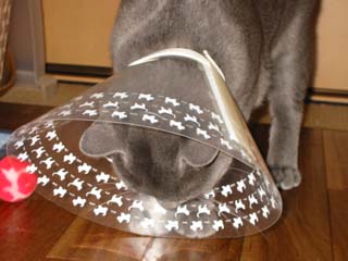 2004/2/2 術後のすぐの アッシュ君 本人は右へ 行きたいようなのですが、 壁に引っかかってます。 |