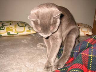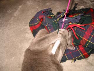2004/2/19 猫じゃらしを ブランケットの下で 見え隠れさせてみたら 手だけでは取れないと 思ったのか? 後ろ足が応援に、、、。 |