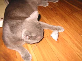 | 2004/2/19 病院でいただいた 猫じゃらしに夢中。 手術後、またお腹の具合が 悪くなってしまった。 体重4.65キロ |