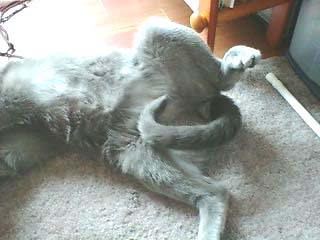 | 2005/5/20 よく見るとしっぽが おなかの方へ巻いており くつろいでいるのか びびっているのか よくわかりませんToT |