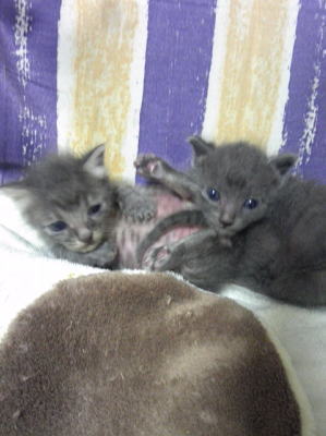 玄(げん 2016年4月15日~) こねこカフェSanctuary(岐阜県・鵜沼)からやってきた グレーで幸せの鍵しっぽの子猫くんです。 お店での名前はロシアンくん 玄は4/15に保健所からまだ目もはっきりしない 乳飲み子の状態で助け出されたそうです、合計7匹。 生き残ったのは2匹(3匹?)だけだった模様、、、(泣) (右の写真は店長さまよりいただきました) 生後1週間ぐらいだと聞きましたので 4/7~4/9あたりに生まれたのだと思いますが 店長さまがこの子を救ってくれた日を誕生日にしました。 お店で初めて見た日は7/7ですやすや寝てました。 2時間粘ったのですが、起きなかったw 次の週に行ったら結膜炎でお休みでいませんでしたが この時にうちに迎え入れたい旨を伝えました。 7/18に詳しい話をしたいと連絡をいただき 翌日ダッシュでお店へ。 玄は結膜炎もすっかり治り、、、寝てましたw それからあっという間にうちに来るという話になり 誓約書や身分証など普通の譲渡手続きをし 後日店長さまがうちに持ってきてくれることに。 その間もほぼ寝てた玄、、、w そして7/28に我が家へ到着~♪ 細かいことを気にしない性格なのか ずっとゴロゴロ言いっぱなしのご機嫌で 物怖じ一切なしの愛想のいい子です。 今までの2匹が超びびりだったので びっくりするぐらい人懐っこくて 全力で遊んでどこでもゴロンと寝てますw 近況など最近の玄はブログへどうぞ♪ こねこカフェSanctuary(保護猫カフェ)では 里親さんやボランティアさんを常時募集しているようです。 猫を飼いたい方や猫と触れ合いたい方はもちろん 今は猫は飼えないけど 猫のために少しでも何かしたい!と思いの方 ぜひ一度こねこカフェへ遊びに行ってみてください。 詳しくはこちら→こねこカフェSanctuaryかFacebook |